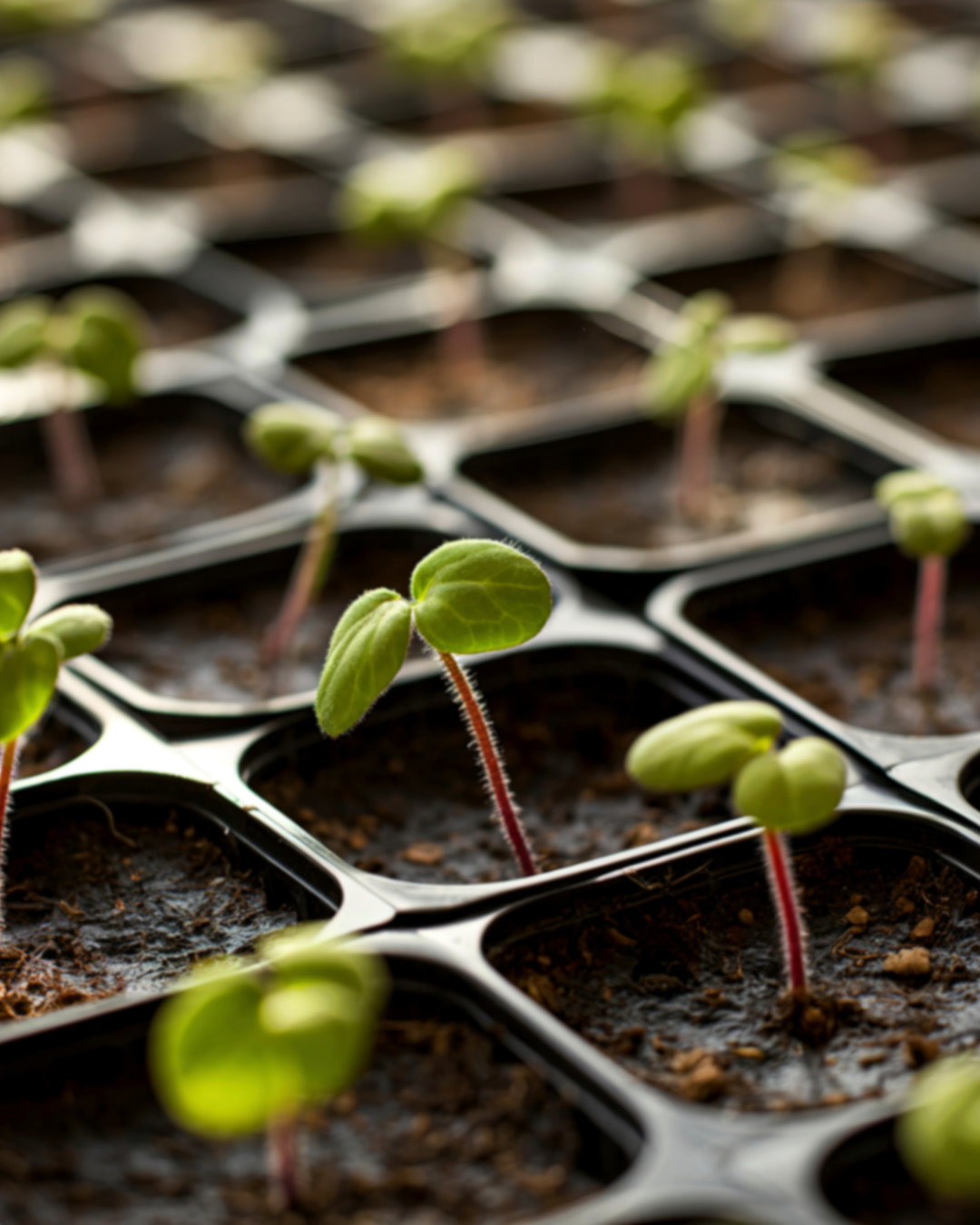 - 40 planted seedlings in a seed-starting tray